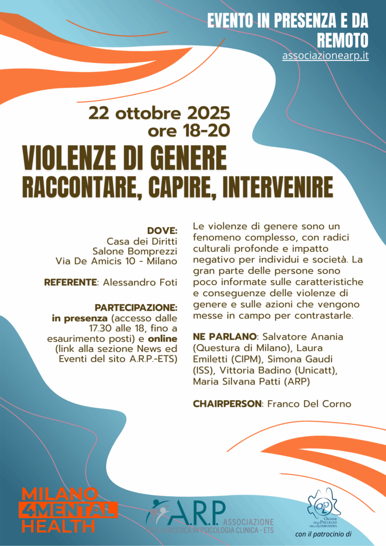 Con questo evento gratuito e aperto a tutta la cittadinanza, A.R.P.-ETS intende approfondire l’argomento con il coinvolgimento di vari professionisti, che forniscono informazioni e prospettive diverse sulla realtà di questi avvenimenti.